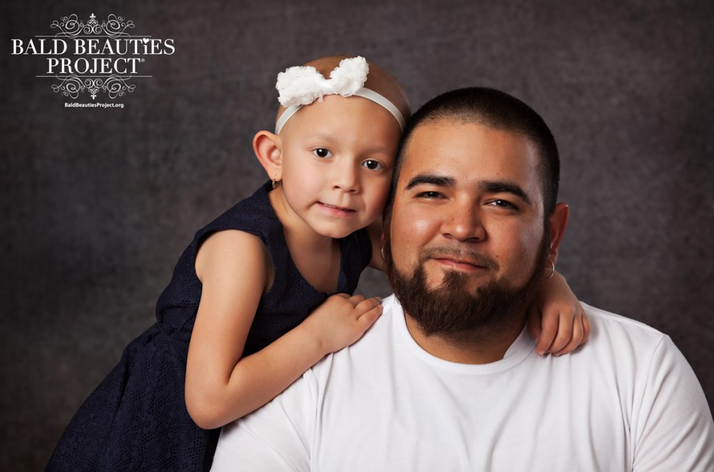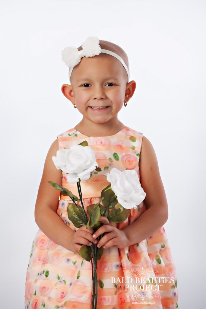 Jaeleana was just like any normal healthy four year old. She went to preschool and played hard with all of her friends. On December 11, 2017 her whole world turned upside down. Jaeleana was so confused on what was going on, so many needles and why was there a new object stuck in her chest? A few weeks after beginning treatment for a Wilms Tumor, she had surgery to remove it. We explained that she would eventually lose her hair. Jaeleana was perfectly fine with it. On Valentine’s morning Jaeleana’s hair started falling out by the handfuls she decided she was ready to shave her head. Jealeana is the most selfless child I have ever known. She embraces her beautiful bald head.