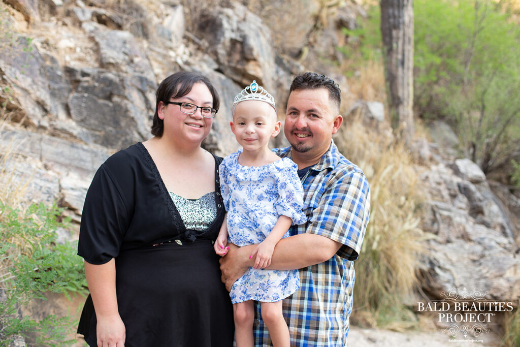 Sara is our 3 year old baby girl whose beauty inside radiates to her outer beauty. She has such a contagious laughter and exudes positivity even though she has endured so much since the day she was born. Sara was born with Inherited Thrombocytopenia (ITP), where Sara had dangerously low platelets that are needed for normal blood clotting. Since birth she has had multiple transfusions, treatments, surgeries and endless testing. Everything has come back normal or negative to even the rarest known illnesses that would cause low platelets. After exhausting every treatment option she was recently diagnosed with “ITP” and it was recommended that Sara have a bone marrow transplant for ITP. Sara’s beautiful golden brown locks fell out in handfuls once she received chemotherapy and immunotherapy treatments. Overnight her beautiful curls became velcro-like on her head and we had no other option but to shave it all off.